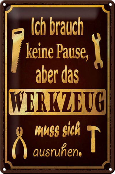 - TitelBlechschild Spruch 20x30cm brauch keine Pause aber Werkzeug [ORIGINAL BLECHSCHILD von FEMER]