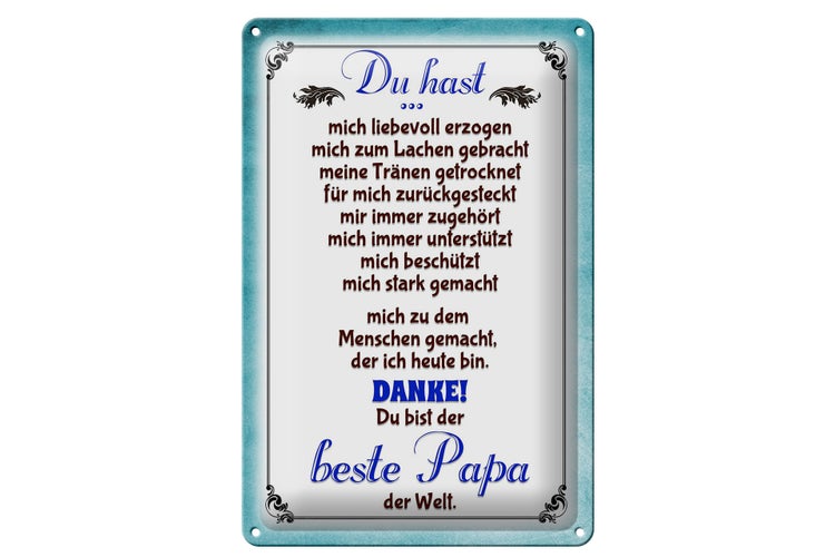 - TitelBlechschild Spruch 20x30cm Danke du bist der Beste Papa [ORIGINAL BLECHSCHILD von FEMER]