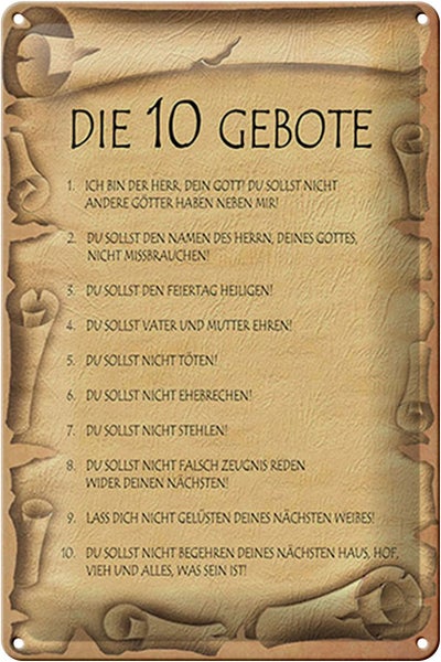 - TitelBlechschild Spruch 20x30cm die 10 Gebote Gottes bin Herr [ORIGINAL BLECHSCHILD von FEMER]