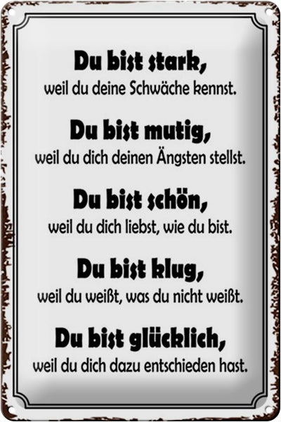 - TitelBlechschild Spruch 20x30cm Du bist stark, mutig, schön [ORIGINAL BLECHSCHILD von FEMER]