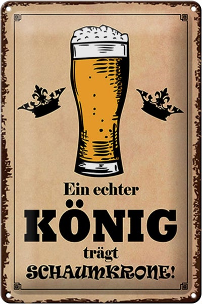 - TitelBlechschild Spruch 20x30cm echter König trägt Schaumkrone [ORIGINAL BLECHSCHILD von FEMER]