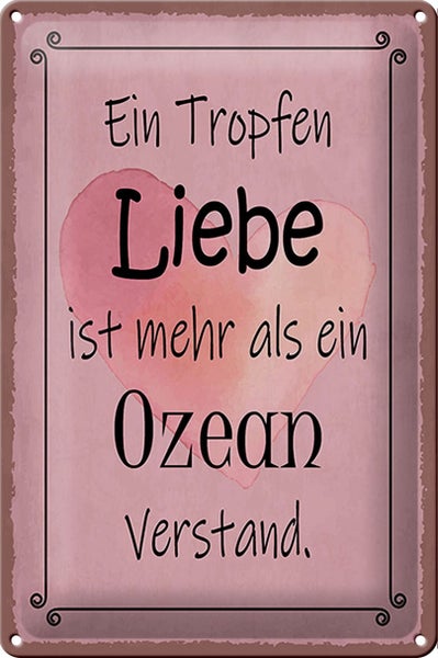 Blechschild Spruch 20x30cm ein Tropfen Liebe mehr als Ozean