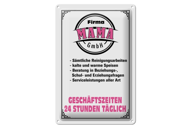 - TitelBlechschild Spruch 20x30cm Firma Mama GmbH 24 Stunden [ORIGINAL BLECHSCHILD von FEMER]