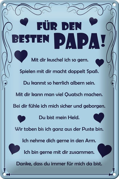 - TitelBlechschild Spruch 20x30cm Für den besten Papa [ORIGINAL BLECHSCHILD von FEMER]