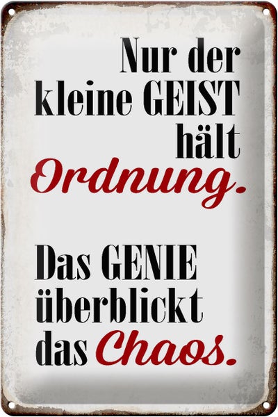 - TitelBlechschild Spruch 20x30cm Geist hält Ordnung Genie Chaos [ORIGINAL BLECHSCHILD von FEMER]