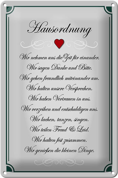 - TitelBlechschild Spruch 20x30cm Hausordnung wir Zeit füreinander [ORIGINAL BLECHSCHILD von FEMER]