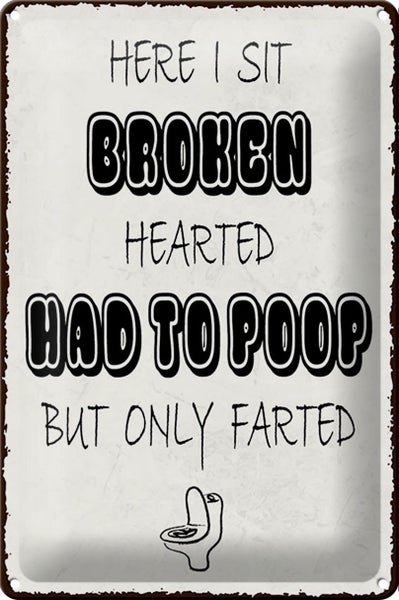 Blechschild Spruch 20x30cm here i sit broken hearted came