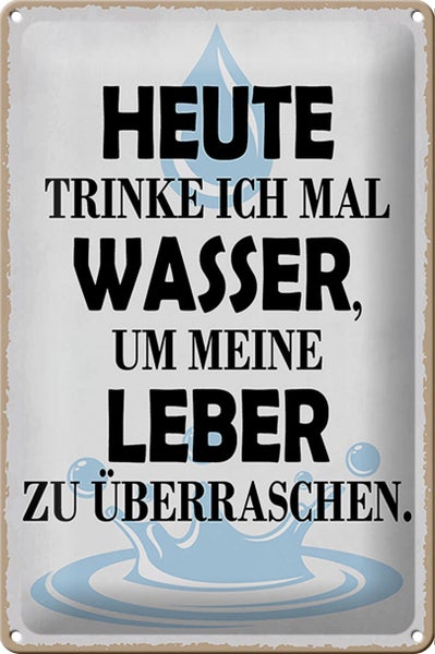 - TitelBlechschild Spruch 20x30cm heute trinke ich Wasser Leber [ORIGINAL BLECHSCHILD von FEMER]