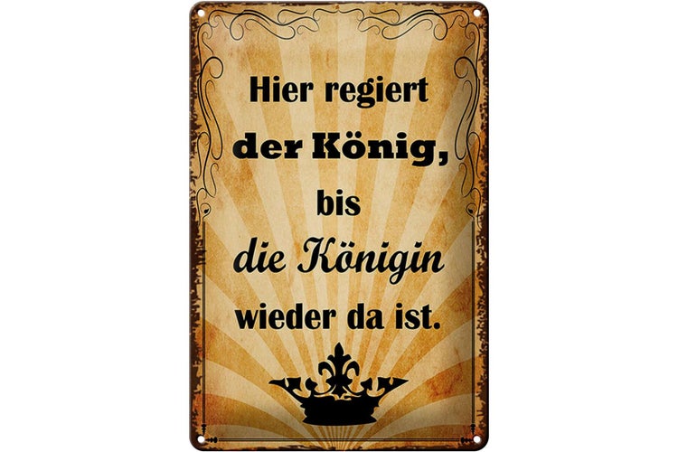 - TitelBlechschild Spruch 20x30cm hier regiert König bis Königin [ORIGINAL BLECHSCHILD von FEMER]