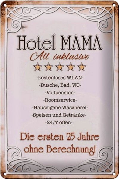 - TitelBlechschild Spruch 20x30cm Hotel Mama All inklusive 24/7 [ORIGINAL BLECHSCHILD von FEMER]