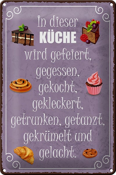 Blechschild Spruch 20x30cm in dieser Küche wird gefeiert