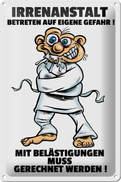 Blechschild Spruch 20x30cm Irrenanstalt Betreten eigene Gefahr