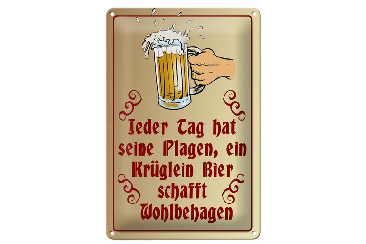 - TitelBlechschild Spruch 20x30cm Jeder Tag hat seine Plagen Bier [ORIGINAL BLECHSCHILD von FEMER]