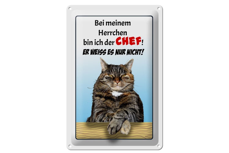 - TitelBlechschild Spruch 20x30cm Katze bei meinem Herrchen Chef [ORIGINAL BLECHSCHILD von FEMER]