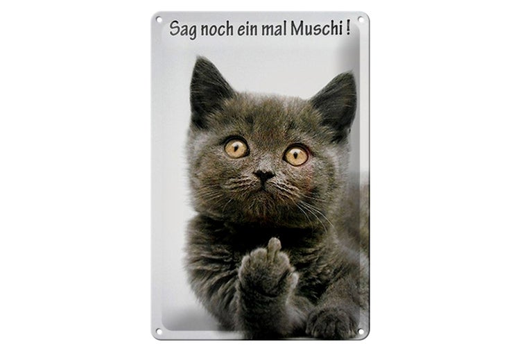 - TitelBlechschild Spruch 20x30cm Katze sag noch ein mal Muschi [ORIGINAL BLECHSCHILD von FEMER]