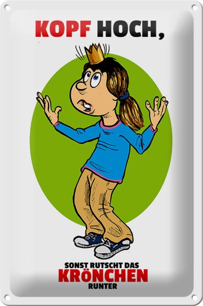 - TitelBlechschild Spruch 20x30cm Kopf hoch sonst rutscht Krönchen [ORIGINAL BLECHSCHILD von FEMER]
