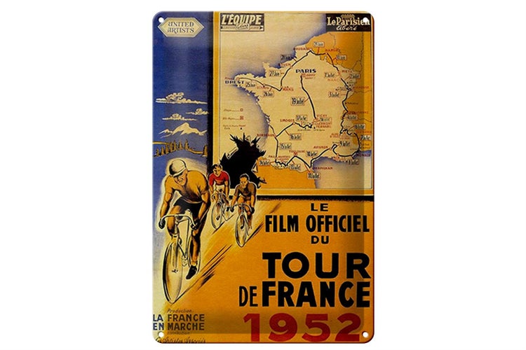 - TitelBlechschild Spruch 20x30cm le film Fahrrad Tour France 1952 [ORIGINAL BLECHSCHILD von FEMER]