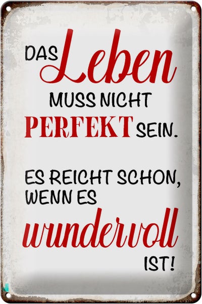 Blechschild Spruch 20x30cm Leben muss nicht perfekt sein