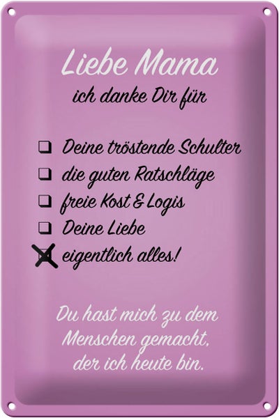 - TitelBlechschild Spruch 20x30cm Liebe Mama ich danke Schild [ORIGINAL BLECHSCHILD von FEMER]