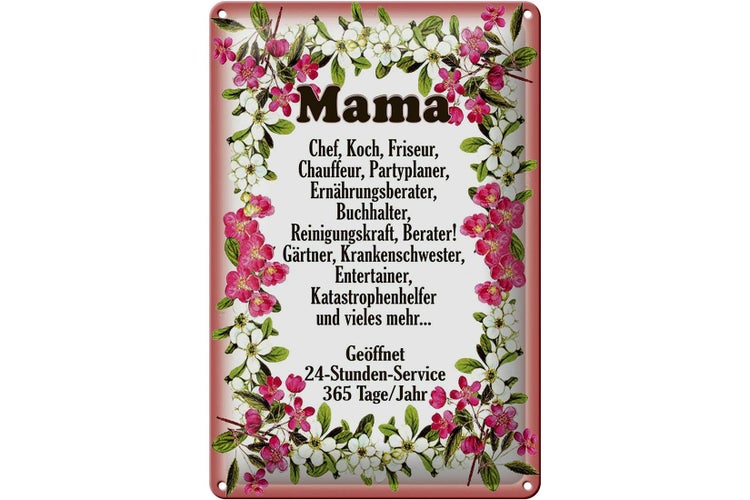 - TitelBlechschild Spruch 20x30cm Mama Chef Koch Friseur Blumen [ORIGINAL BLECHSCHILD von FEMER]