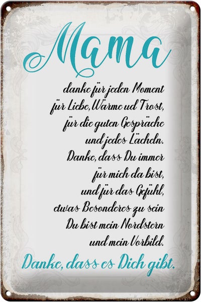 - TitelBlechschild Spruch 20x30cm Mama Danke dass es Dich gibt [ORIGINAL BLECHSCHILD von FEMER]