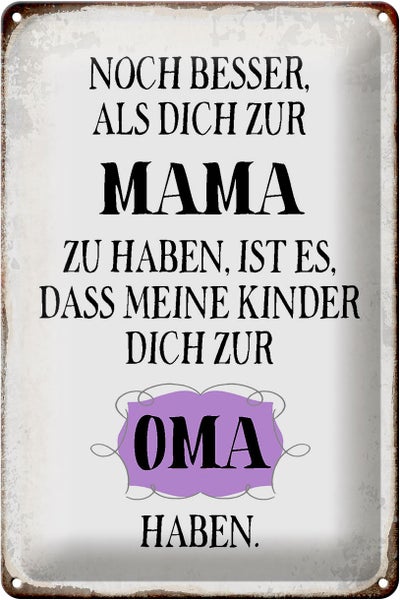 Blechschild Spruch 20x30cm Mama noch besser dich zur Oma