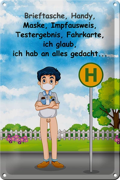 Blechschild Spruch 20x30cm Maske Impfausweis alles gedacht
