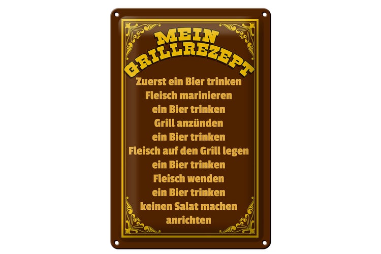 Blechschild Spruch 20x30cm mein Grillrezept zuerst ein Bier