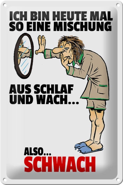 - TitelBlechschild Spruch 20x30cm Mischung Schlaf wach also schwach [ORIGINAL BLECHSCHILD von FEMER]