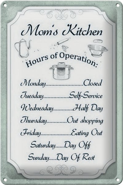 - TitelBlechschild Spruch 20x30cm Mom`s Kitchen Hours Operation [ORIGINAL BLECHSCHILD von FEMER]