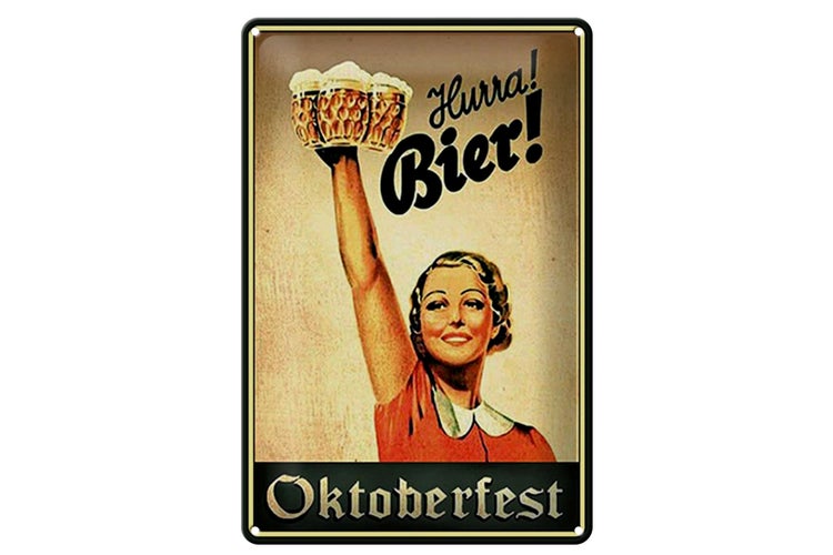 - TitelBlechschild Spruch 20x30cm Oktoberfest Hurra Frau mit Bier [ORIGINAL BLECHSCHILD von FEMER]