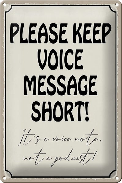 - TitelBlechschild Spruch 20x30cm please keep voice message short [ORIGINAL BLECHSCHILD von FEMER]