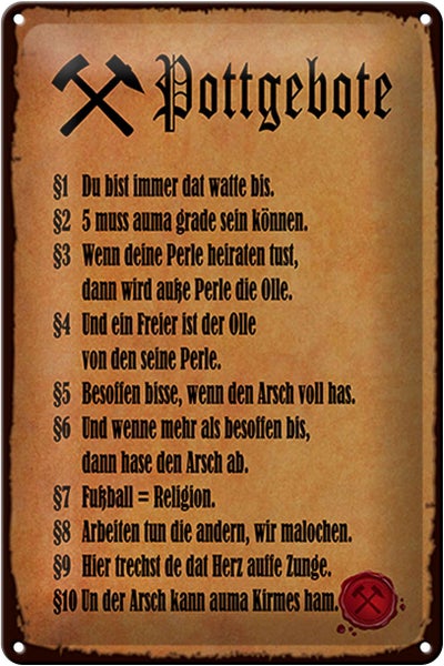 - TitelBlechschild Spruch 20x30cm Pottgebote du biste immer dat [ORIGINAL BLECHSCHILD von FEMER]