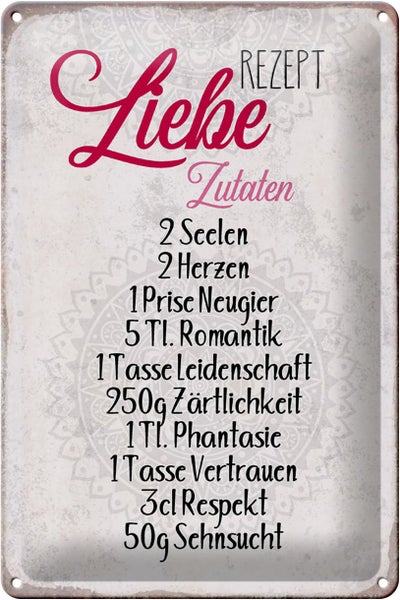 Blechschild Spruch 20x30cm Rezept Liebe Zutaten Schild