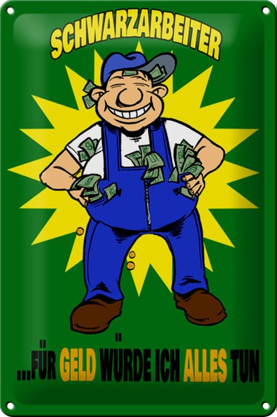 - TitelBlechschild Spruch 20x30cm Schwarzarbeiter für Geld alles tun [ORIGINAL BLECHSCHILD von FEMER]