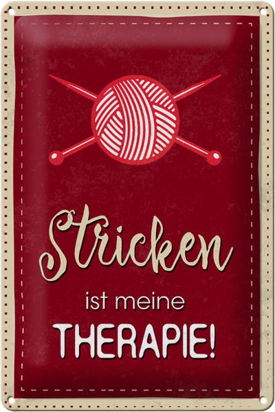- TitelBlechschild Spruch 20x30cm Stricken ist meine Therapie [ORIGINAL BLECHSCHILD von FEMER]