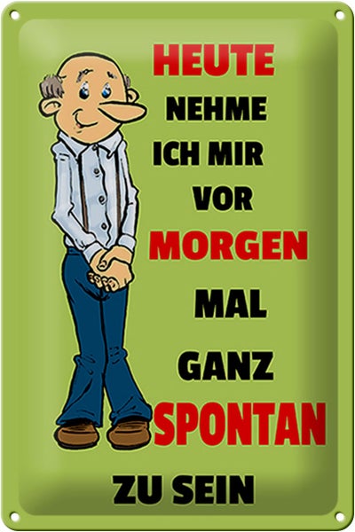 Blechschild Spruch 20x30cm vornehmen morgen spontan zu sein