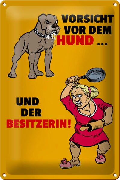 - TitelBlechschild Spruch 20x30cm Vorsicht vor Hund & der Besitzerin [ORIGINAL BLECHSCHILD von FEMER]