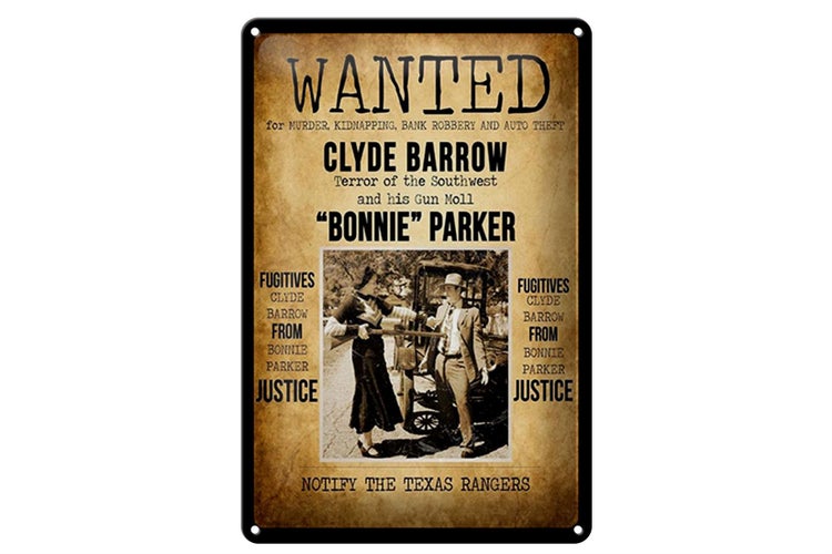 - TitelBlechschild Spruch 20x30cm wanted Clyde Barrow Bonnie [ORIGINAL BLECHSCHILD von FEMER]
