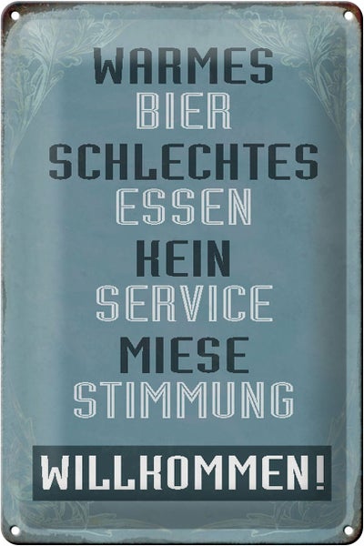 - TitelBlechschild Spruch 20x30cm warmes Bier schlechtes Essen [ORIGINAL BLECHSCHILD von FEMER]