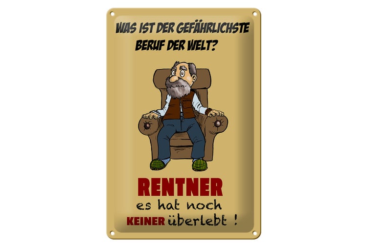 - TitelBlechschild Spruch 20x30cm was gefährlichster Beruf Rentner [ORIGINAL BLECHSCHILD von FEMER]