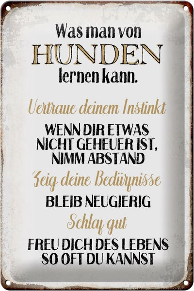 - TitelBlechschild Spruch 20x30cm was man von Hunden lernen kann [ORIGINAL BLECHSCHILD von FEMER]