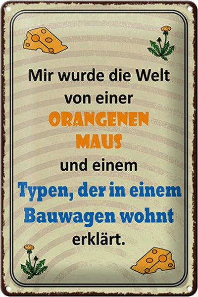 - TitelBlechschild Spruch 20x30cm Welt orangene Maus und Typen [ORIGINAL BLECHSCHILD von FEMER]