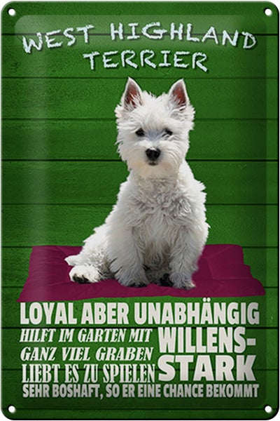 Blechschild Spruch 20x30cm West Highland Terrier Hund stark