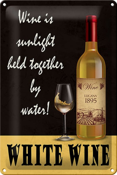 - TitelBlechschild Spruch 20x30cm White Wine is sunlight held [ORIGINAL BLECHSCHILD von FEMER]