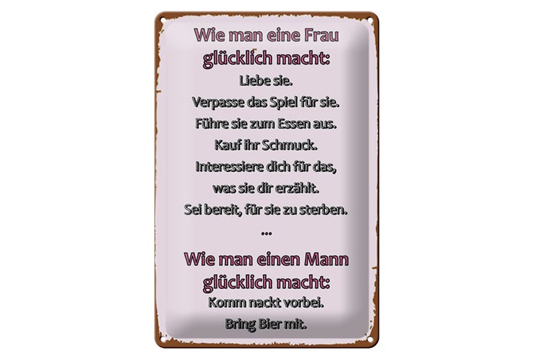 - TitelBlechschild Spruch 20x30cm Wie man Frau glücklich macht [ORIGINAL BLECHSCHILD von FEMER]