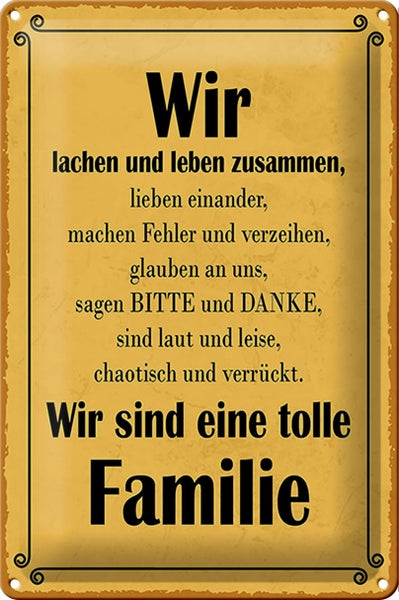 - TitelBlechschild Spruch 20x30cm wir sind eine tolle Familie [ORIGINAL BLECHSCHILD von FEMER]