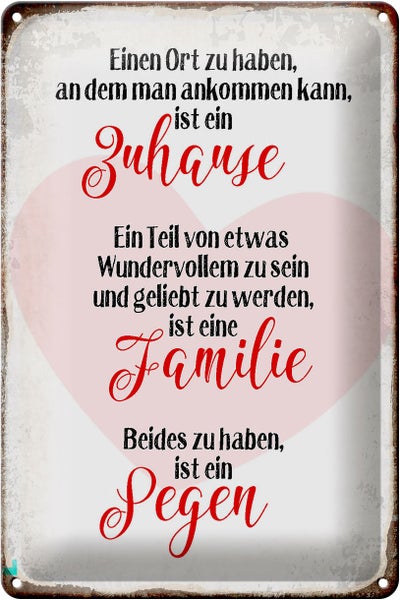 - TitelBlechschild Spruch 20x30cm Zuhause Familie Segen Herz [ORIGINAL BLECHSCHILD von FEMER]