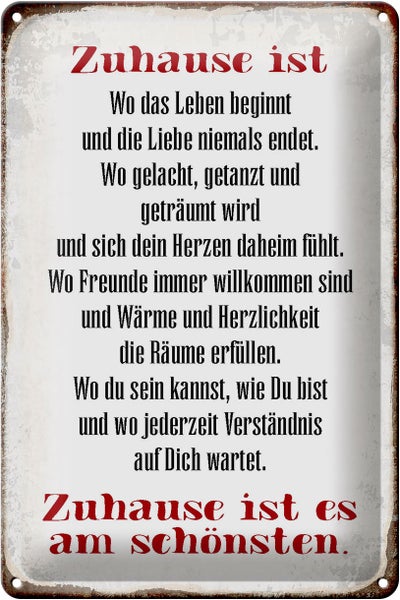 Blechschild Spruch 20x30cm Zuhause ist am schönsten