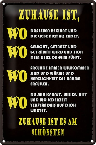- TitelBlechschild Spruch 20x30cm Zuhause ist wo Leben und Liebe [ORIGINAL BLECHSCHILD von FEMER]
